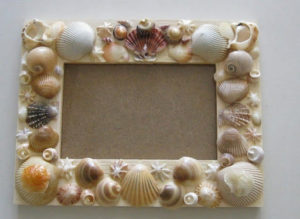 - Красива рамка за снимки, украсена с мидички, събрани по време на пътувания.
