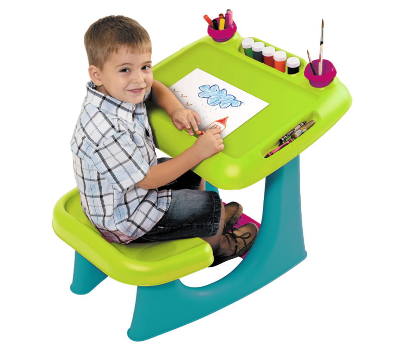 Бюрото, което расте заедно с детето ви, е полезен и практичен подарък. Тя може да се използва за рисуване, моделиране и учене на писане. Тя ще ви помогне да развиете добра стойка и е полезна за уроците в началното училище. Регулира се според височината на детето.
