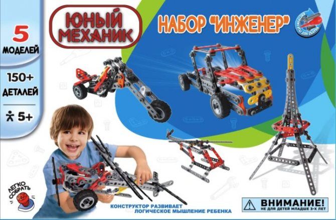 Ако не разчитате на голяма сума пари, можете да изберете дизайнер с по-малко части и една монтажна схема. Понякога децата на тази възраст измислят свои собствени предмети от малък брой части.