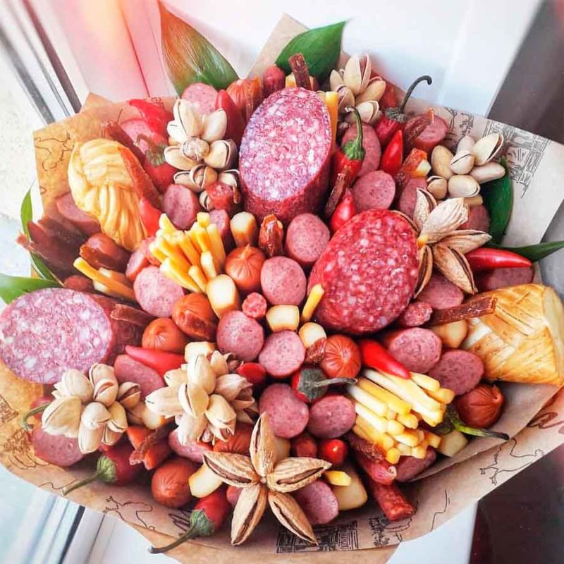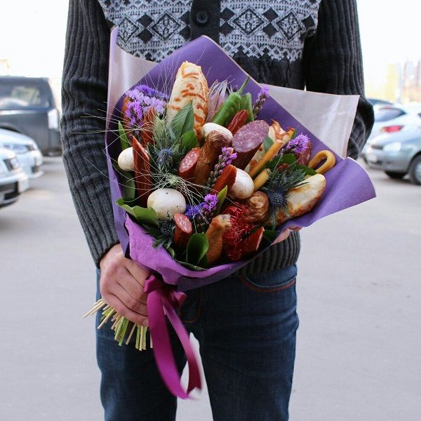 Съвет. Не забравяйте да прикрепите букет от сирене или колбаси към всеки подарък за годишнината на мъж, защото мъжете обикновено са безразлични към цветята, а вкусният букет ще бъде полезен.