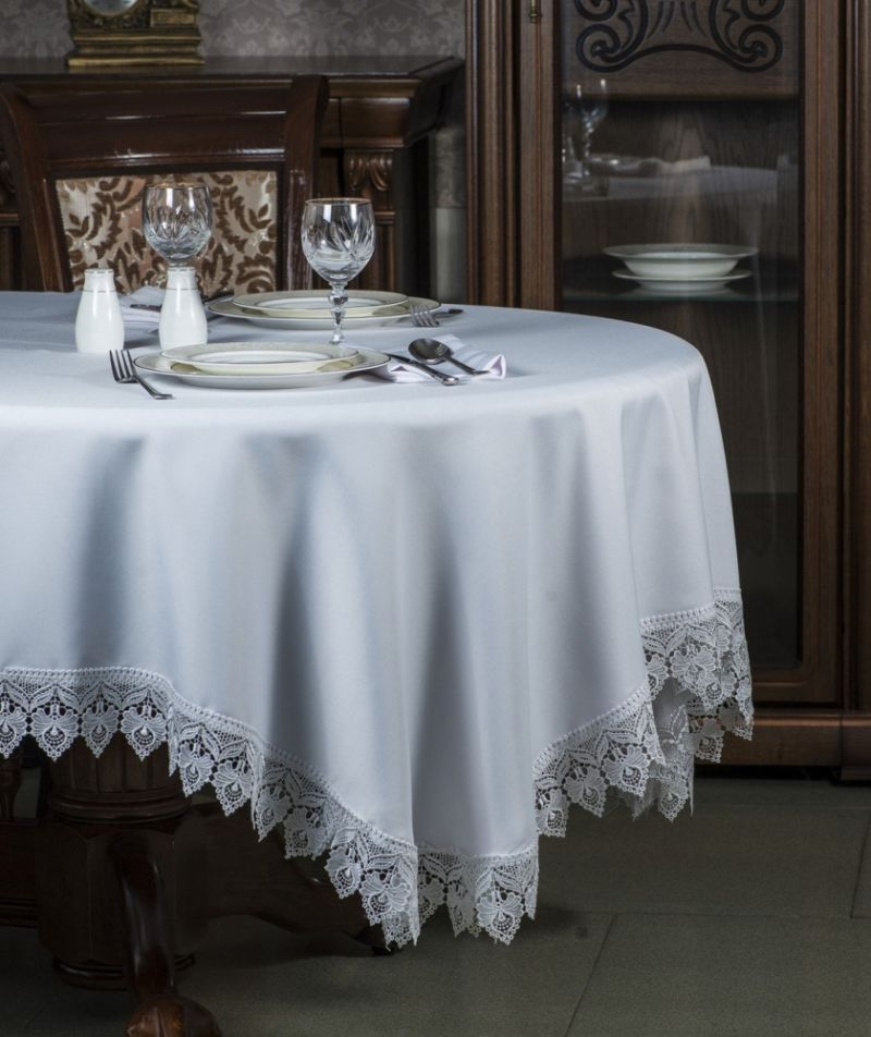 Гостоприемните домакини ще оценят снежнобялата покривка и салфетките, елегантно изрисувани с шевици.