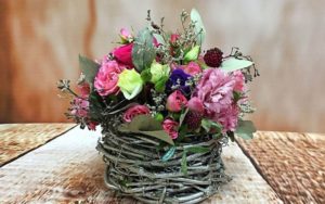 В този случай съставът може да бъде направен от обичайните цветя, както и с помощта на храна.