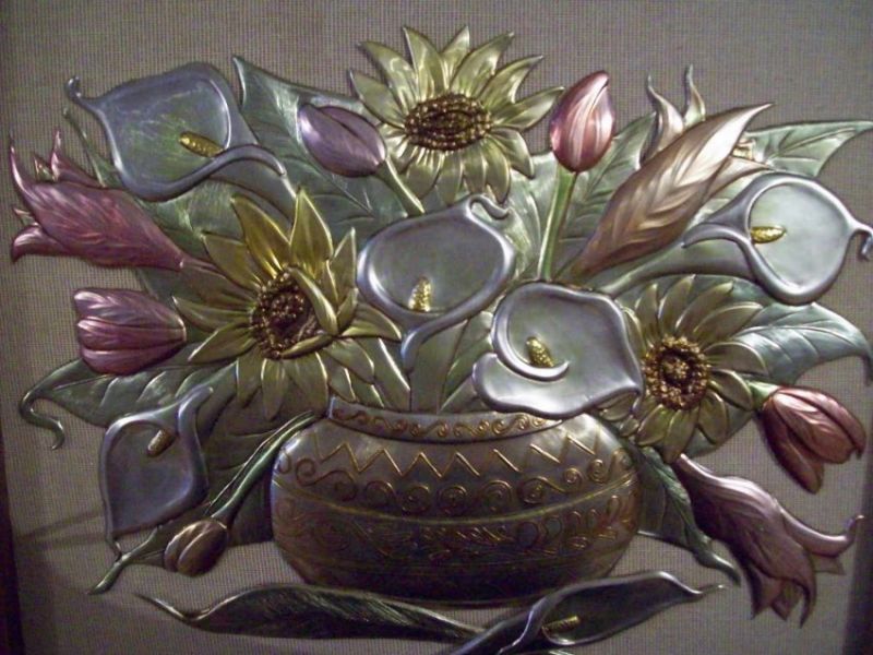 Мек гъвкав материал, отличаващ се с благороден блясък - това е, което отличава домашните цветя от фолио от другите ръчно изработени изделия. Шевиците съчетават основните принципи на "ръчната" работа, които са заимствани от различни техники.