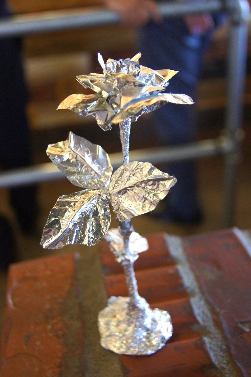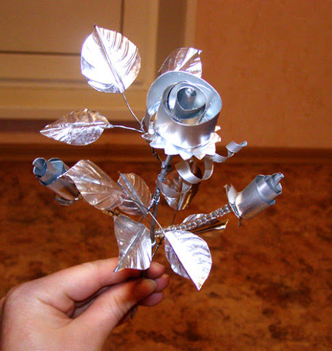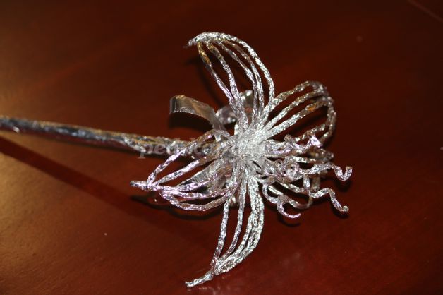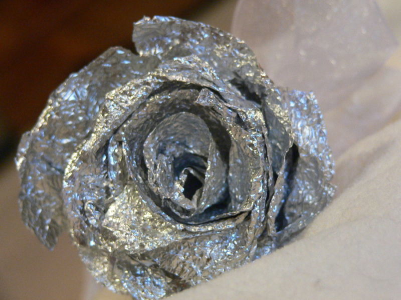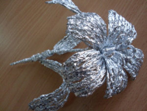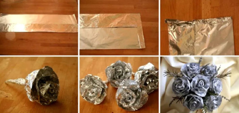 За да "създадете" ръчно изработени рози и лилии, ще ви е необходимо сребърно фолио и прости инструменти: