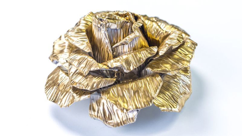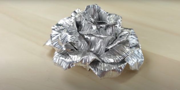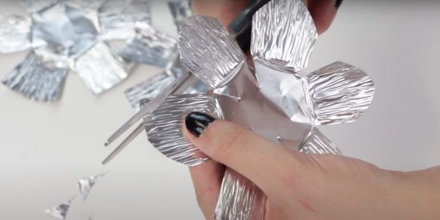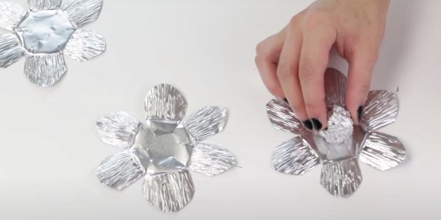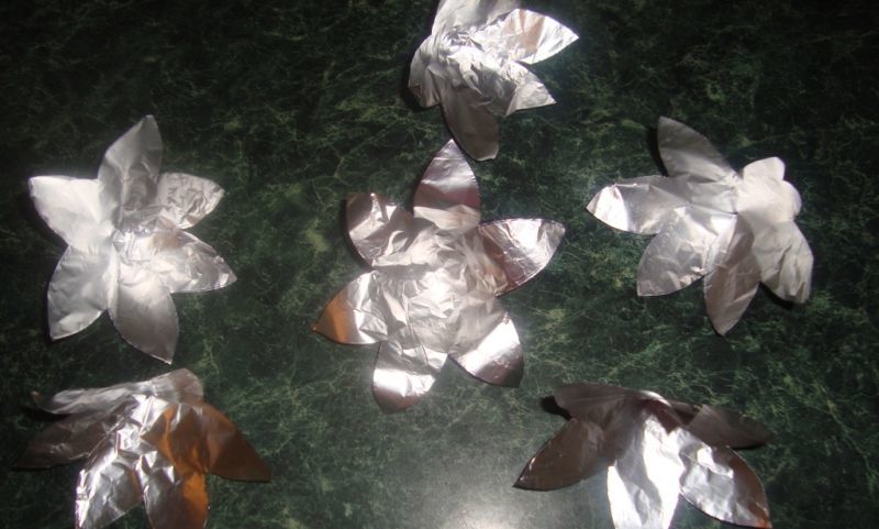 Ако има достатъчно фолио, трябва да се направят още 2 цветя по същия начин. Те могат да се отварят по различен начин, но листенцата трябва да са с еднаква дължина.