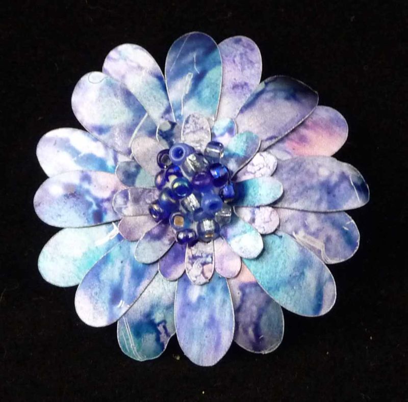 - Можете да изрежете няколко листенца от едно парче фолио, да завиете средата с тръбичка и да ги увиете хубаво. Това е централната част, към която са прикрепени останалите венчелистчета.