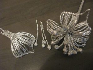 - Свържете гъвкавите клонки в кръст, след което прикрепете други елементи, за да оформите венчелистче.