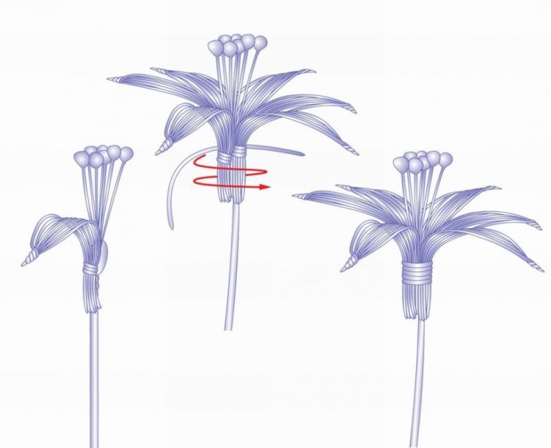 Красотата на цветето зависи от приликата му с живо растение. Затова можете леко да разгънете венчелистчетата и да им придадете извита форма като на цъфнала лилия.