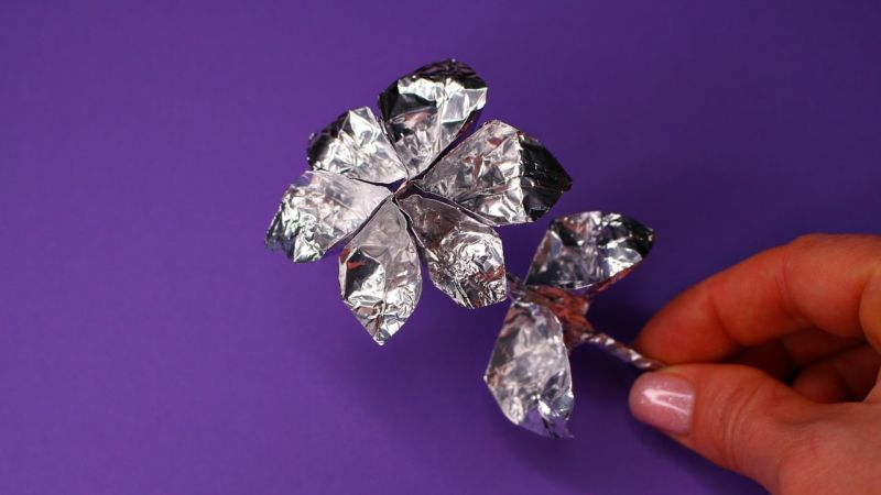 Занаятите с фолио не изискват сложни инструменти или времеемки начини за подготовка на суровините. Ръцете са основното нещо, с което трябва да работите, когато оформяте венчелистчетата и гъвкавите пръчици от алуминиево фолио.