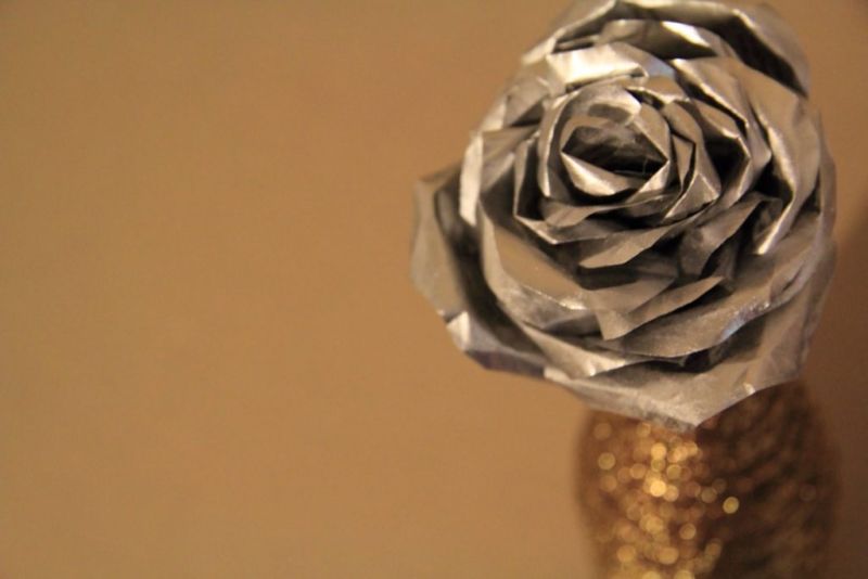 Трябва внимателно да сортирате фолиото, преди да разточите лъскавите тръбички или "металните" розови листенца. Те трябва да са с еднаква повърхност - хромираната или матовата страна, обърната към основата.