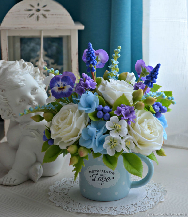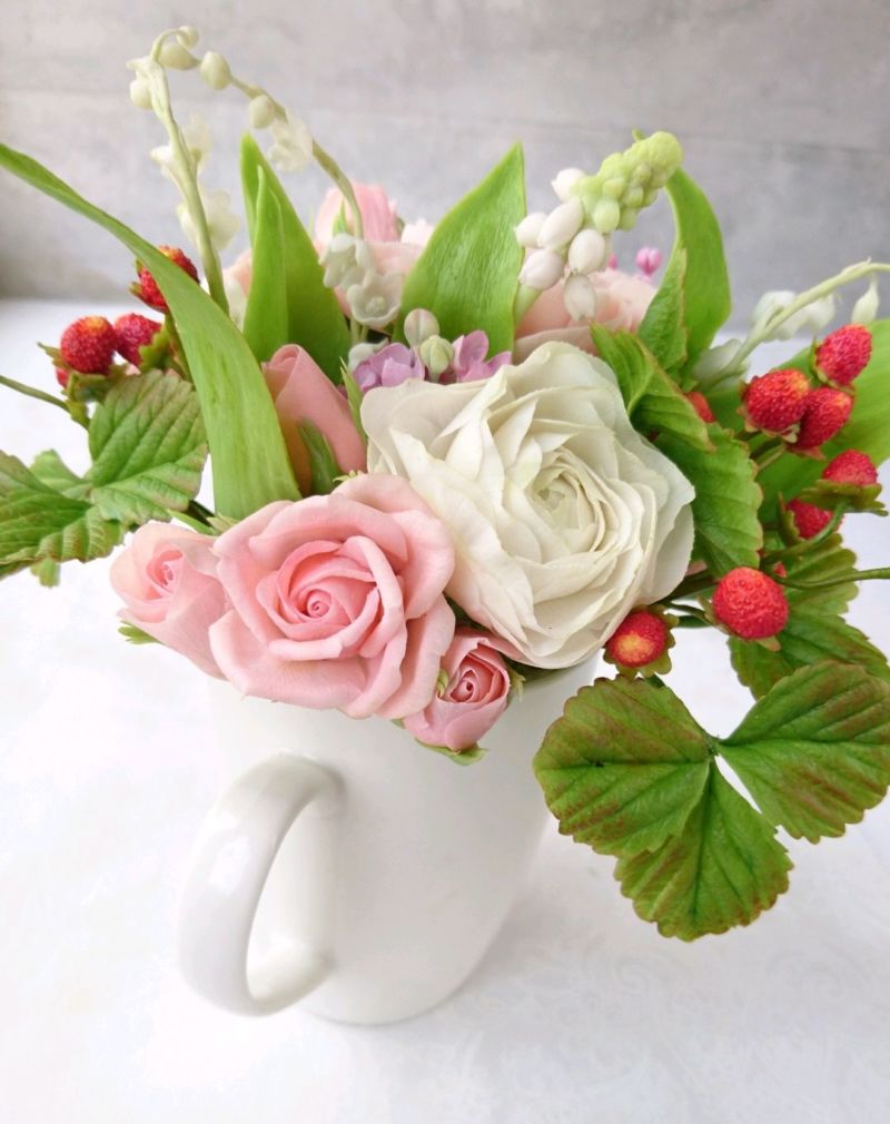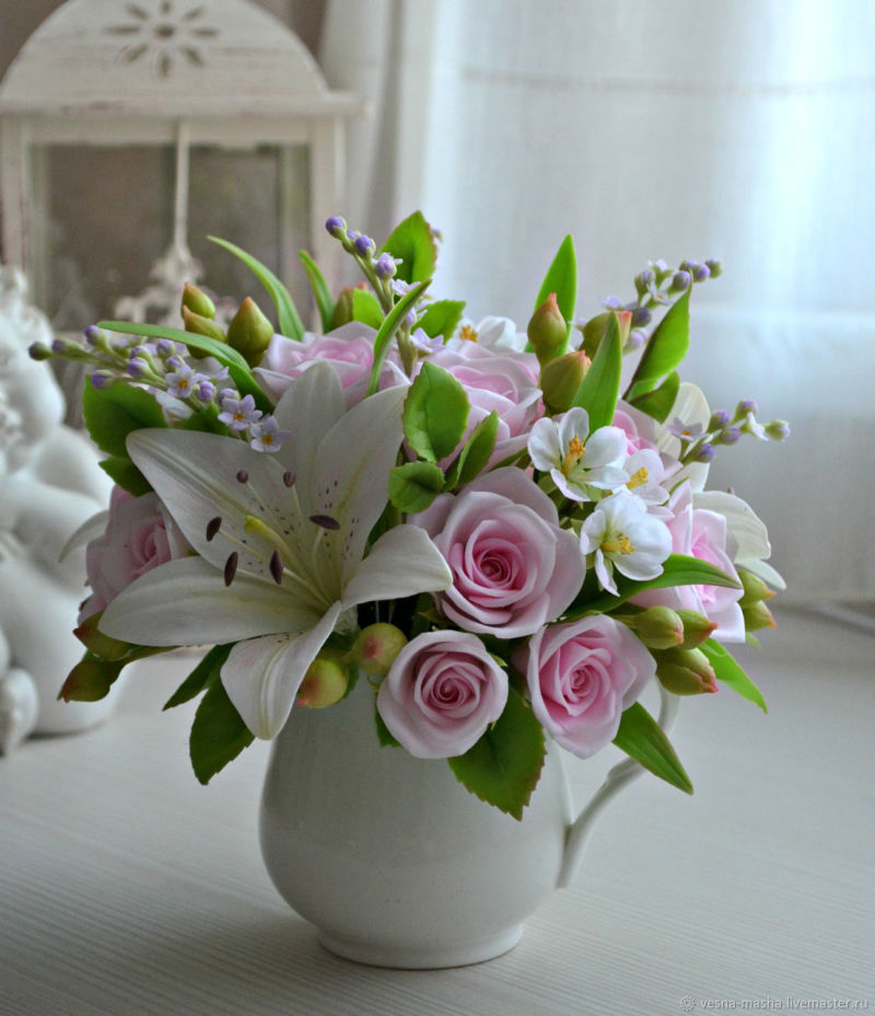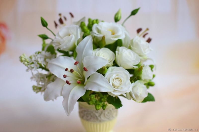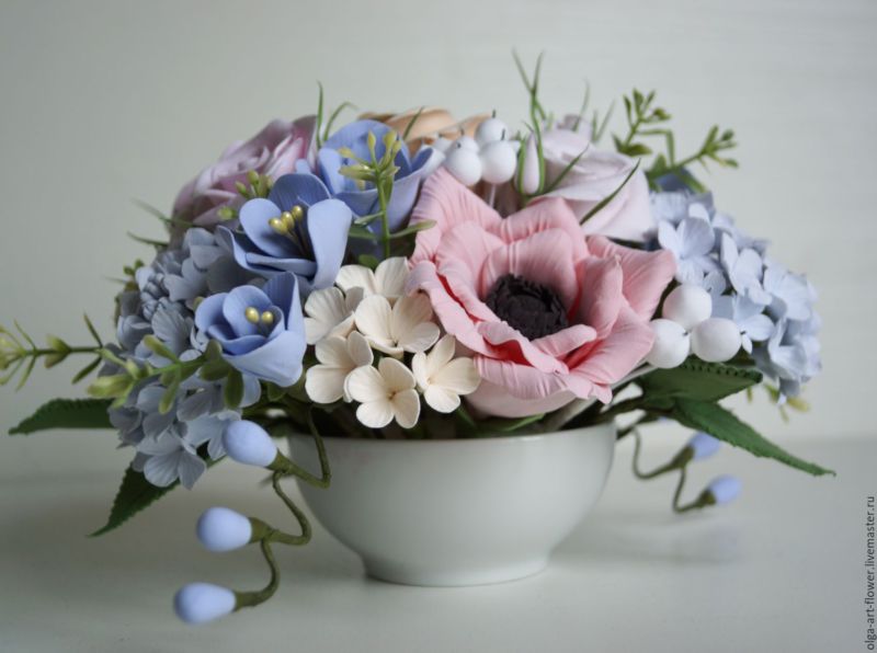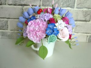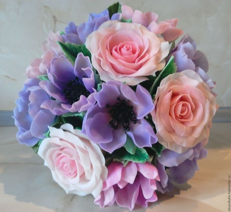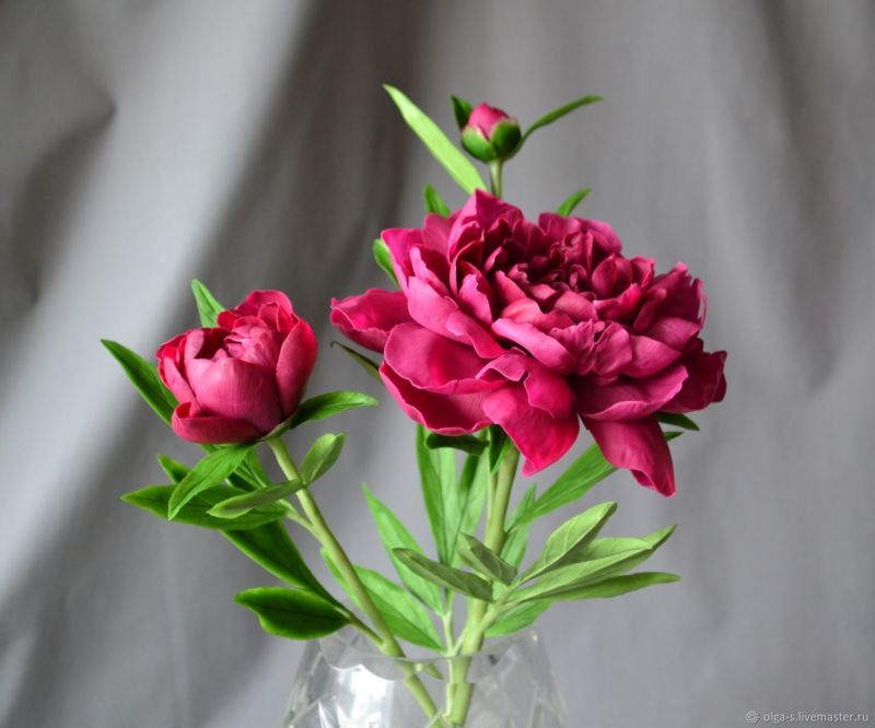 Работата с полимерна глина е лесна и интересна. Човек може лесно да се научи да създава миниатюрни, големи цветя. Не можете да сменяте водата във вазата всеки ден, не се притеснявайте, не се притеснявайте. Само от време на време почиствайте праха от тях.