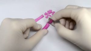 Под тях към стъблото трябва да се прикрепят още три овални венчелистчета, така че едното от тях да е зад тръбовидното венчелистче, а другите две едва да докосват краищата на второто отгоре.