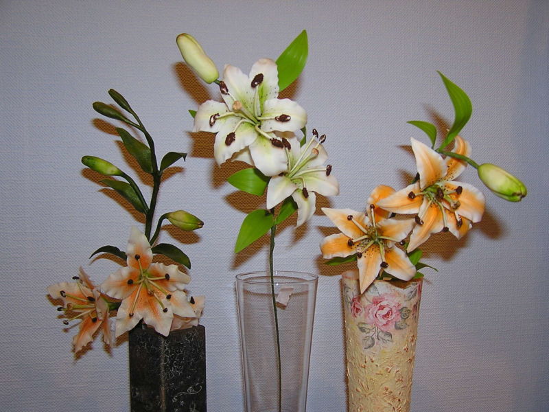 Стъблото се изработва за всички цветя по същия начин, както за калемите. Лилията има тичинки, а стълбчето е оформено като продълговата зелена дръжка със заоблени краища, като семената са на опашката на дръжката. Първо те се оформят и прикрепят към стеблото.