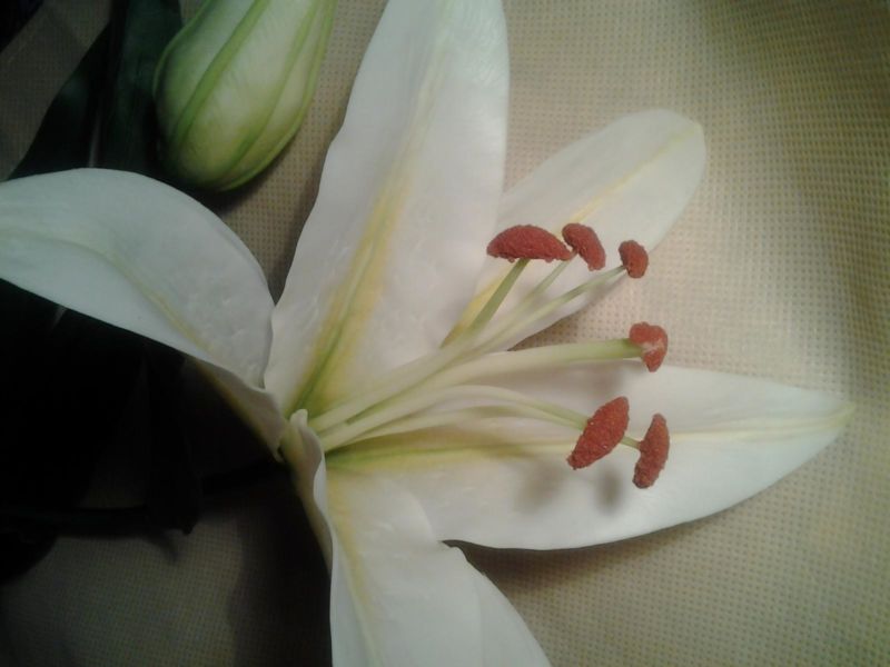 След това направете бяла цветна пъпка с издължен заострен връх, подобен на сърце. Калата е утвърдена, но си струва да прецените плюсовете и минусите на следващото цвете. Може да е например лилия.