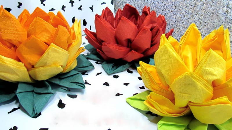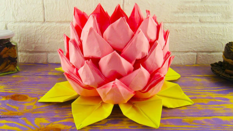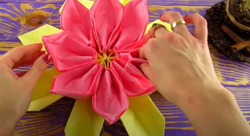 Красивият лотос от салфетки е готов!