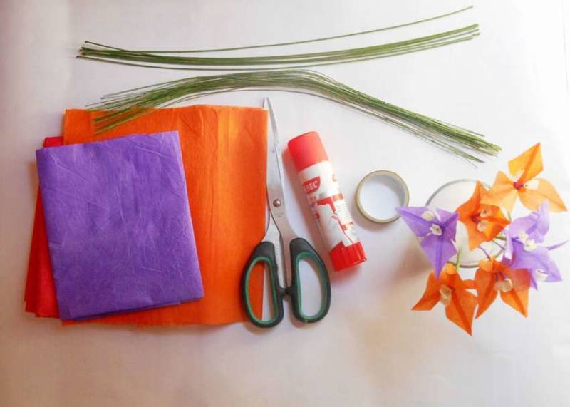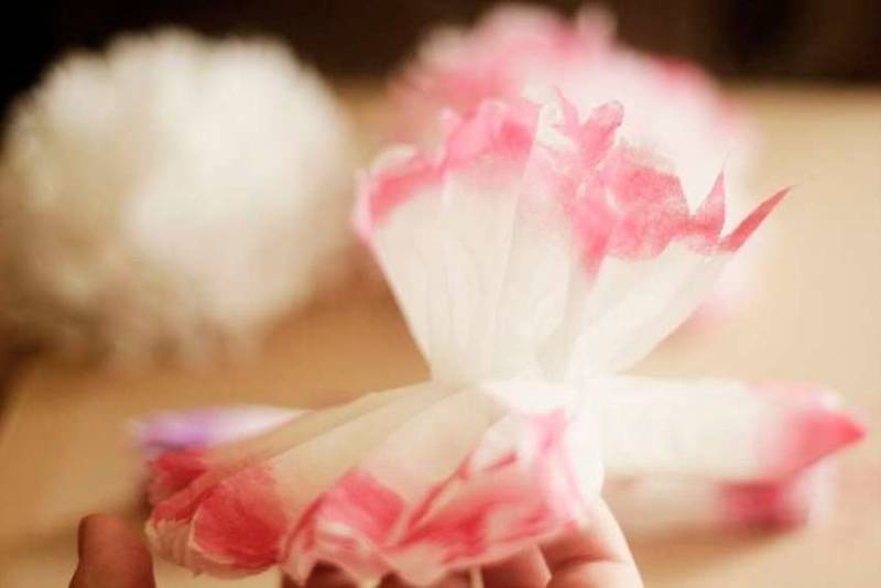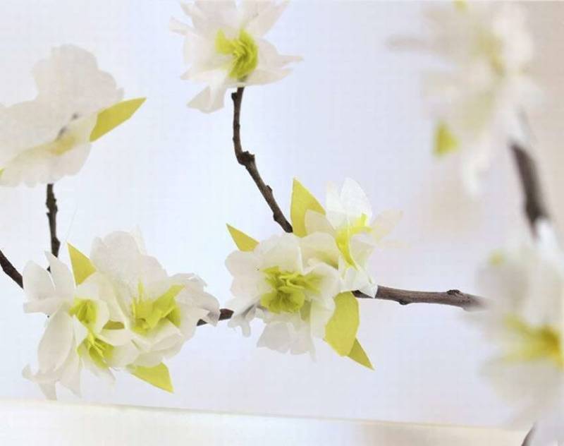 Тези цветя, които се асоциират с цветовете на крушата, имат много красив и привличащ вниманието външен вид. Необходими са ви меки салфетки, истинско или телено клонче и ножица.