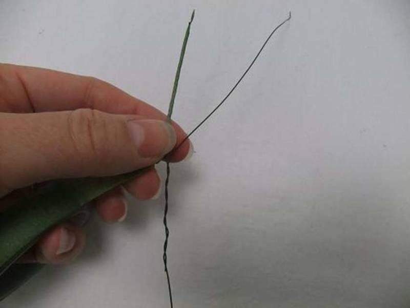 - Полученото парче се прикрепя към зеленото стебло.