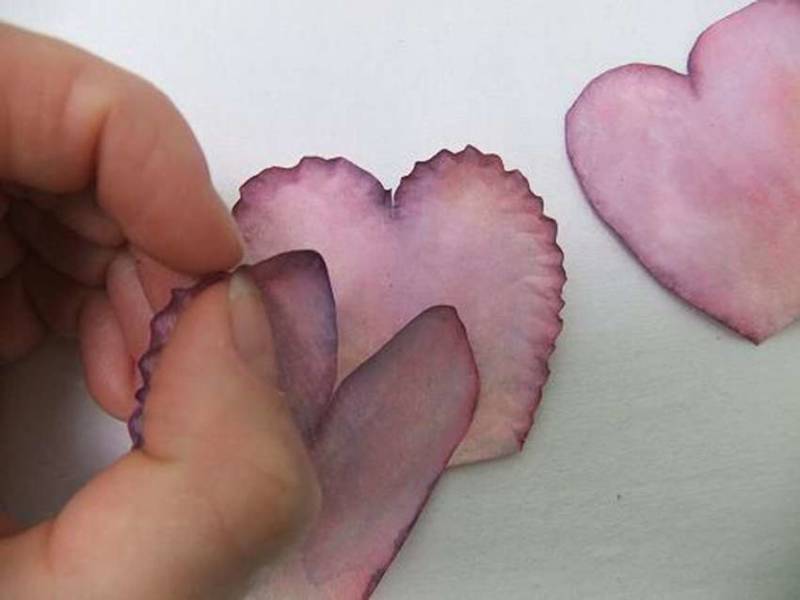 - Получените венчелистчета се оцветяват или тонират с акварелна или акрилна боя.