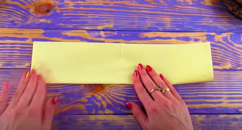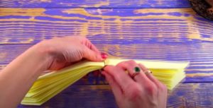 - Жълтата салфетка се сгъва няколко пъти наполовина и се нарязва на квадратни парчета.