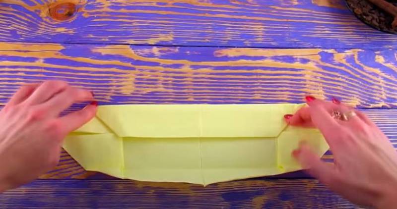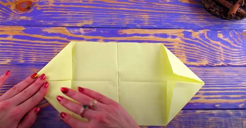 - Прегънете ъглите към центъра и обърнете на другата страна.