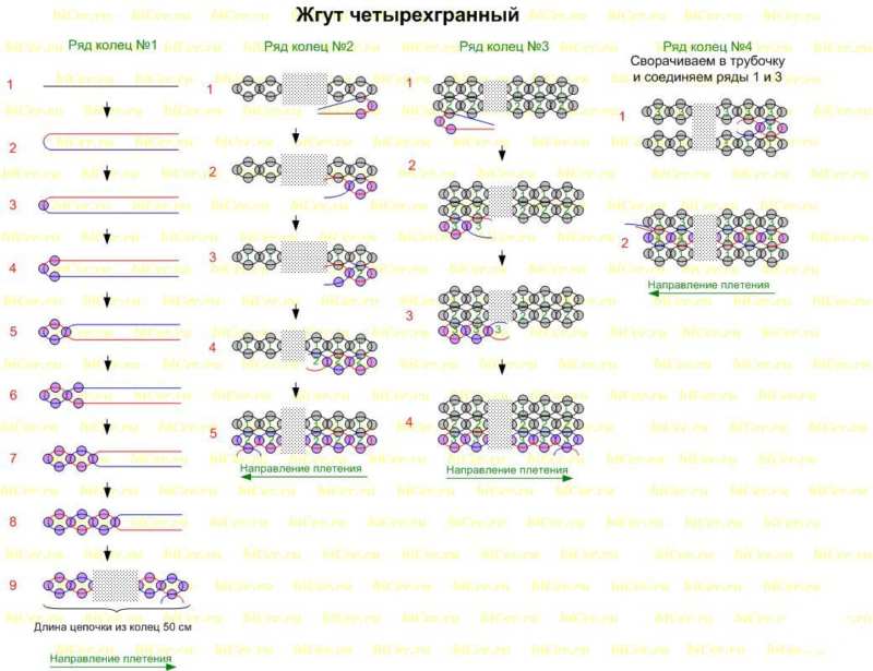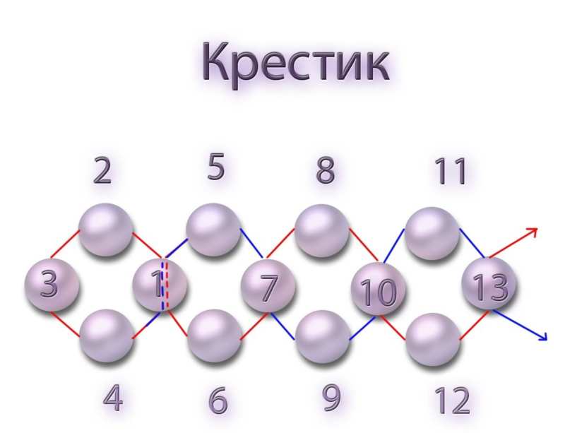 Във всички схеми мънистата са обходени и подчертани в нюанси. Цифрите пред всеки ред показват броя на мънистата в него.