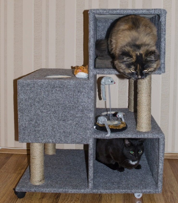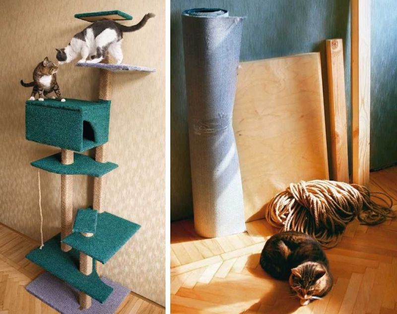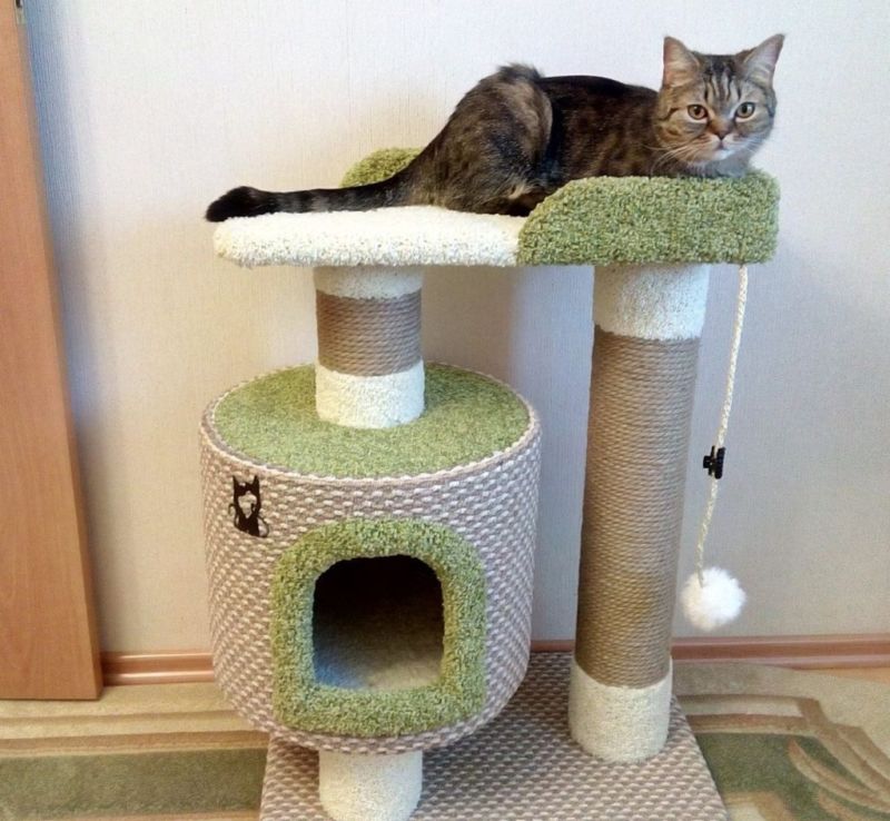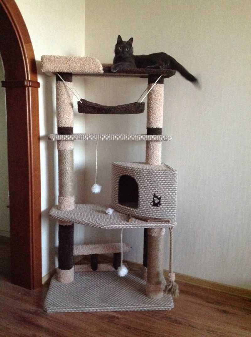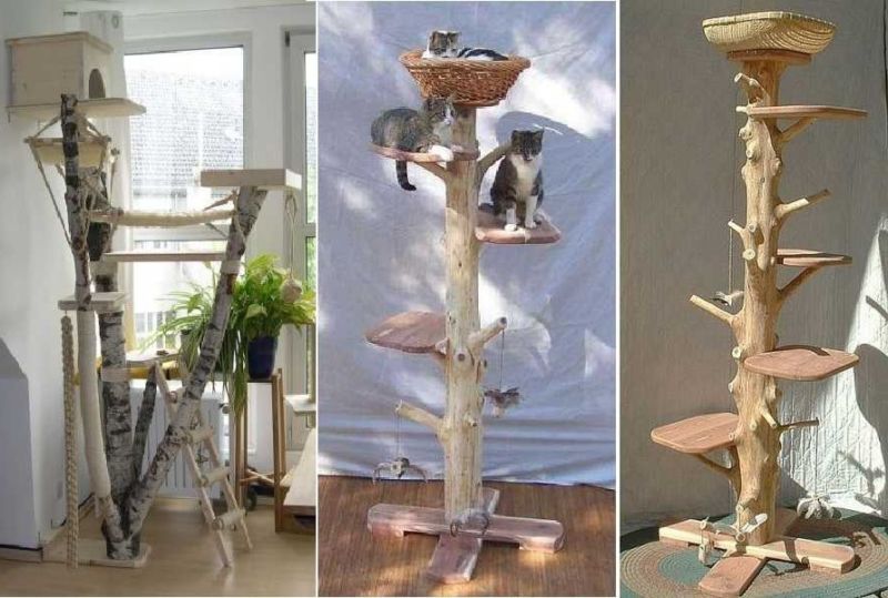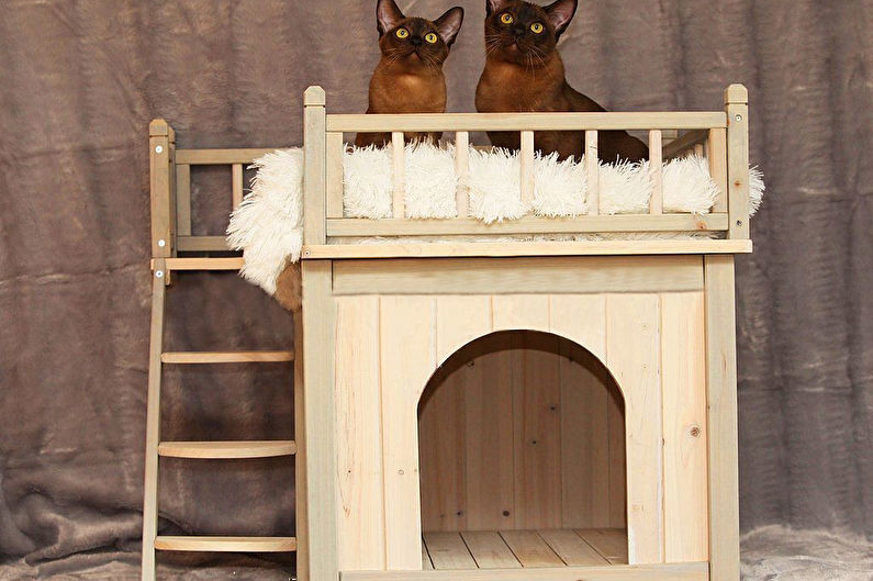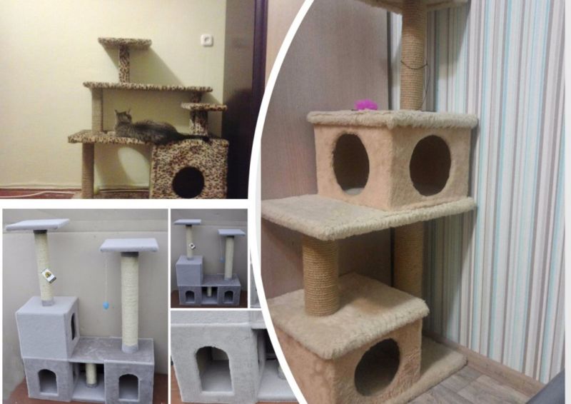 Най-функционалните варианти са многоетажни къщички за котки, изработени от шперплат, с две или три платформи за наблюдение. Височината на конструкциите зависи от темперамента на животното.