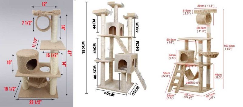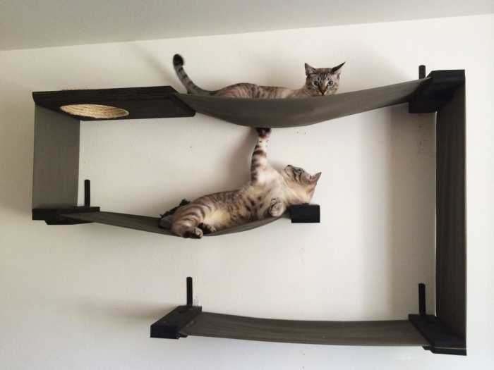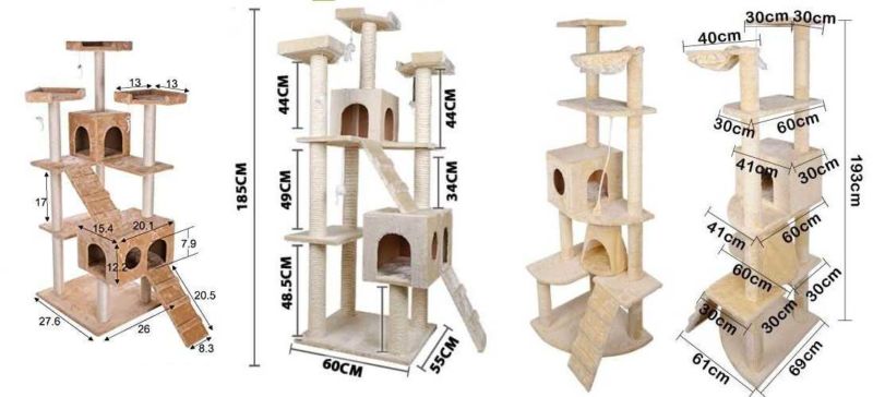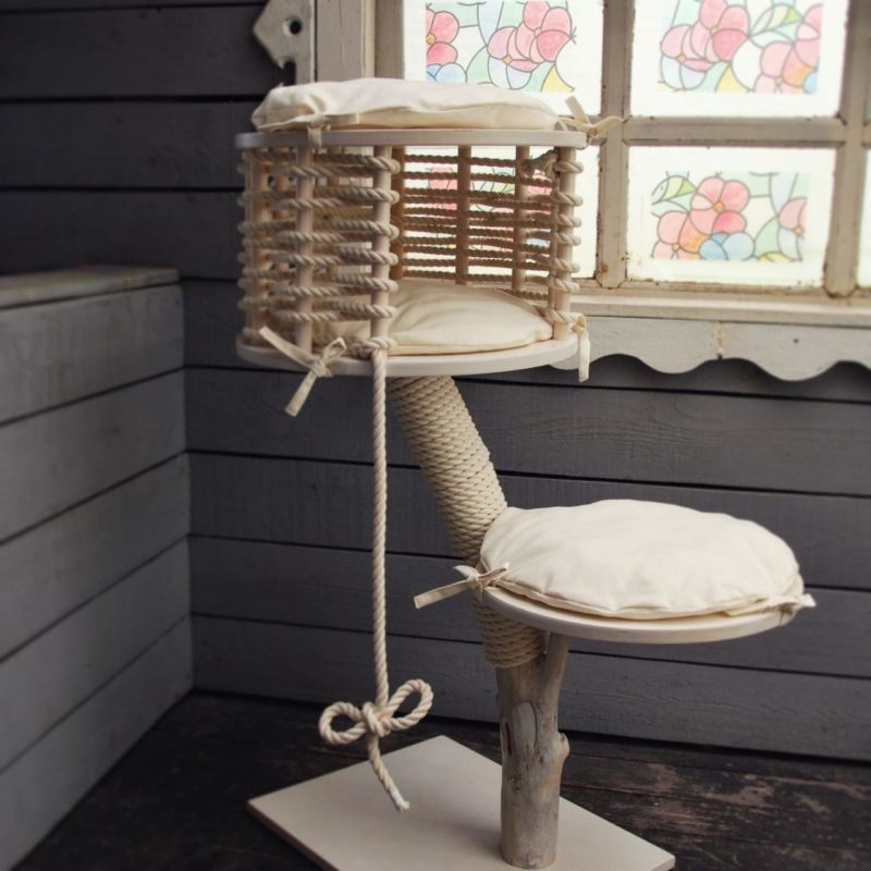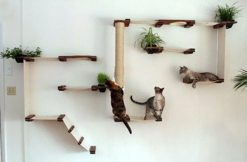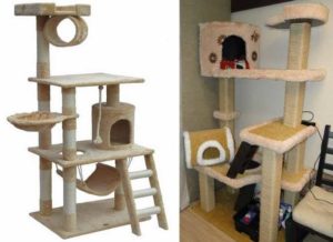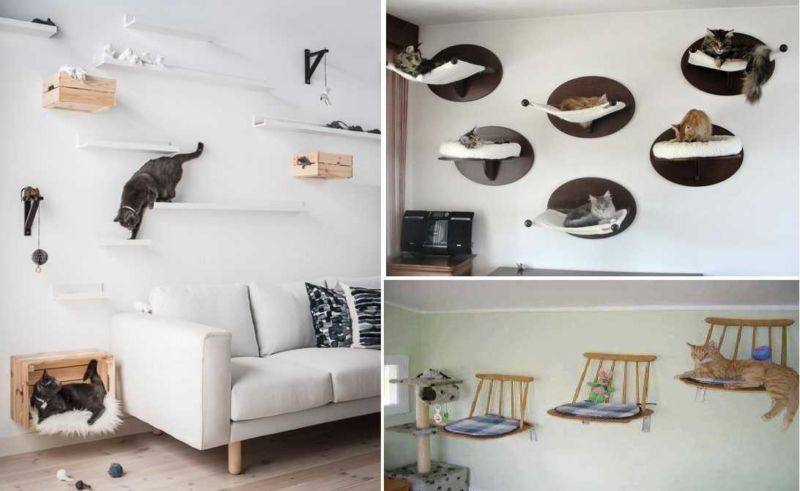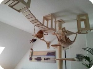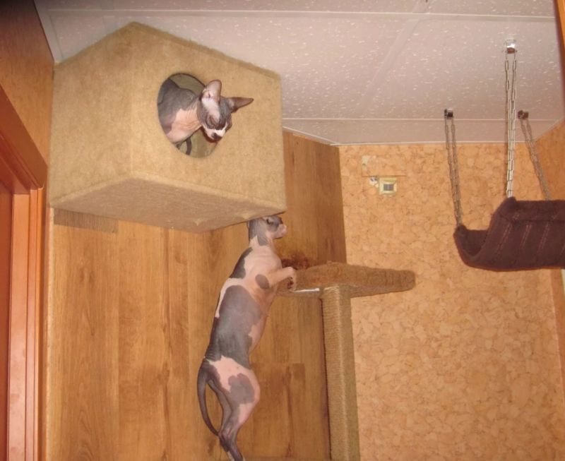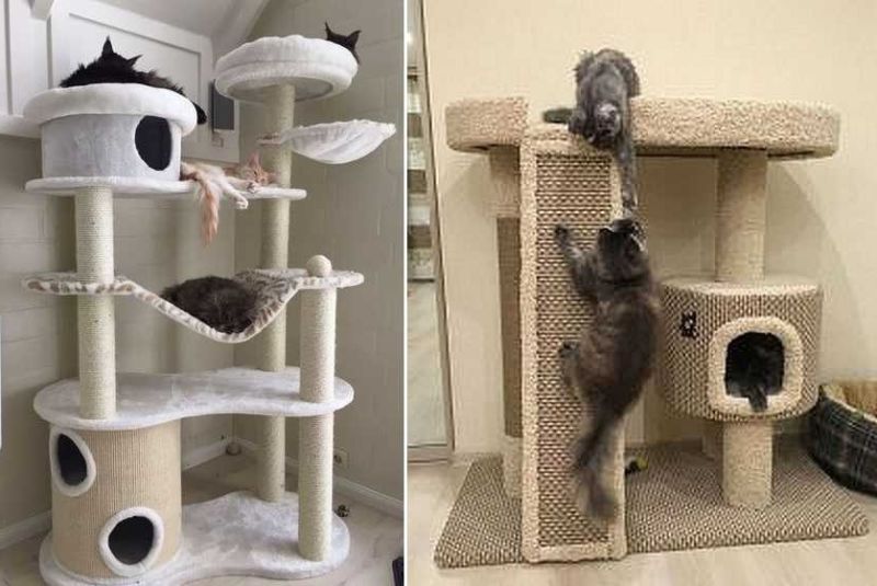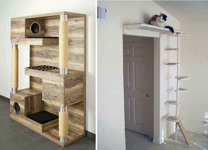 Най-функционалните варианти са многоетажни къщички за котки, изработени от шперплат, с две или три платформи за наблюдение. Височината на конструкциите зависи от темперамента на животното.