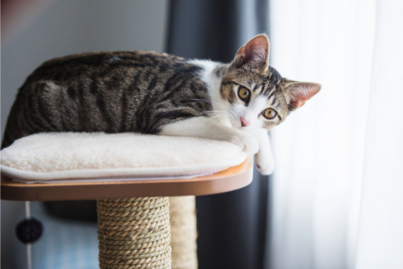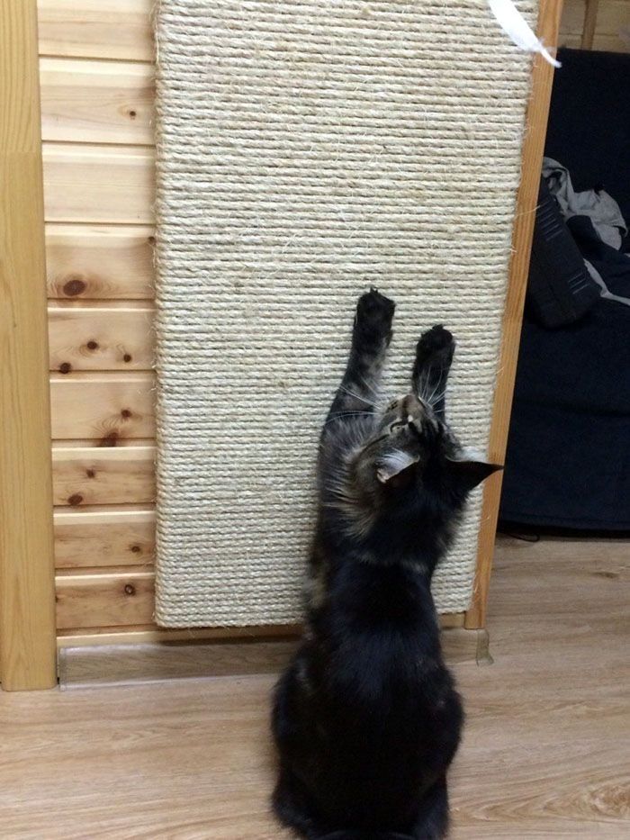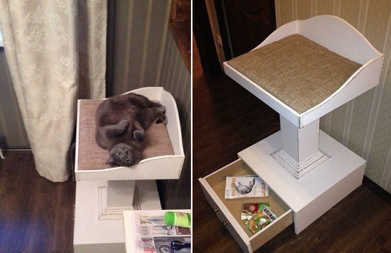 - Желателно е котката да има достатъчно място в направената конструкция, когато лежи настрани, протягайки се след сладка дрямка, за острието на ноктите.