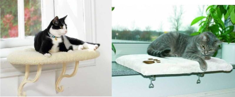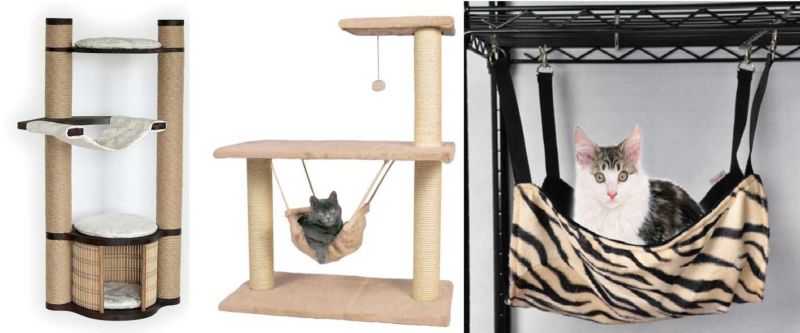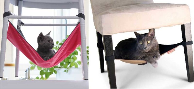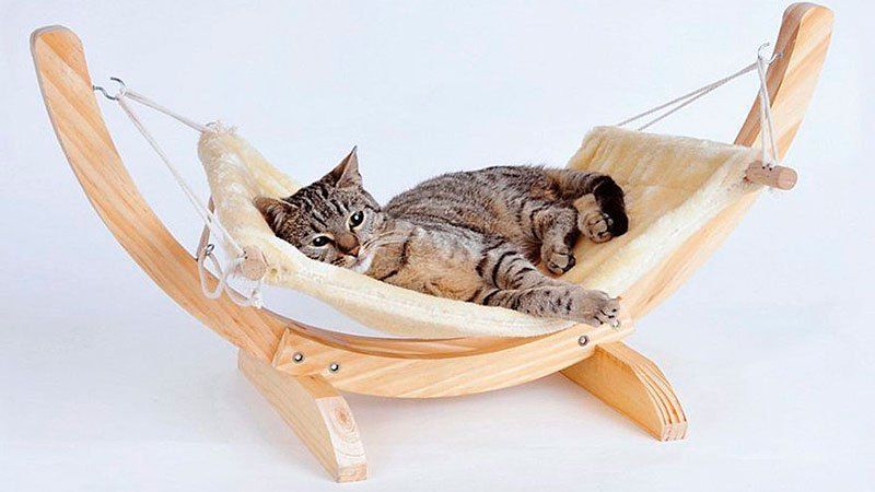 Те са ушити от пенопласт, дебел плат и синтетичен материал. Хамакът е прикрепен към куката на тавана с широки ленти от дебел текстил. Колкото и да е странно, котките много харесват тези окачени конструкции, макар че е трудно да ги наречем удобни.
