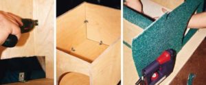 - Използвайте мебелни скоби, за да свържете стените на конструкцията и да им придадете кубична форма.