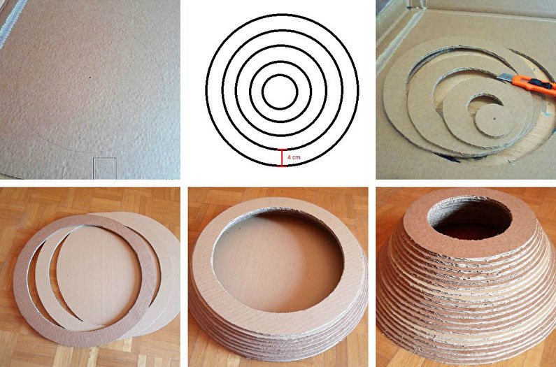 - Сглобете картонената кула до средата, като залепите изрязаните дискове един върху друг.