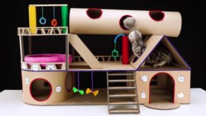 Замък - Приютът за домашни любимци, наподобяващ замък, се състои от 4-5 кутии, подредени в сложна структура с многоетажни проходи. Всяка стая трябва да е удобна за престой на домашния любимец. Затова трябва да се закупят кутии с подходящ размер.