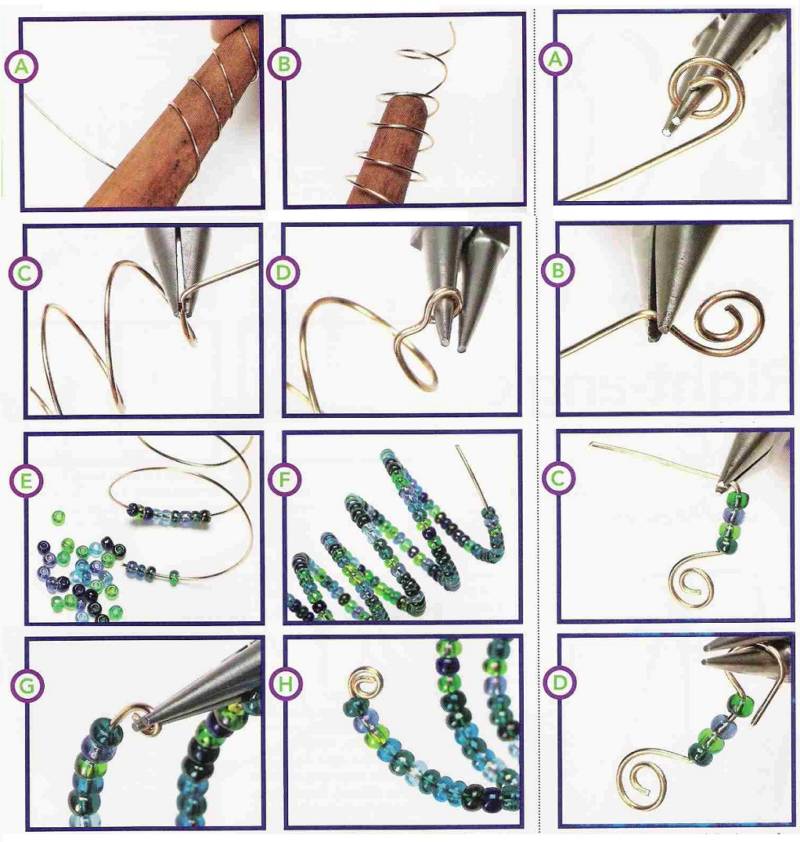 Можете да ги поставите на проводника в желаната от вас последователност. След като приключите, трябва да усучете телената основа в конусовидна спираловидна форма.