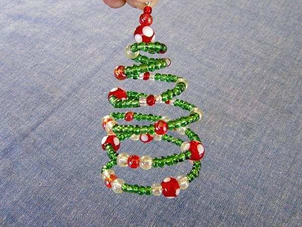 За начинаещите е най-добре да започнат с най-простите идеи, сред които е спираловидната коледна елха. Това не изисква много мисъл или време. Изработката му е лесна и проста, когато имате под ръка достатъчно твърда пружинна тел и мъниста с подходящ цвят.