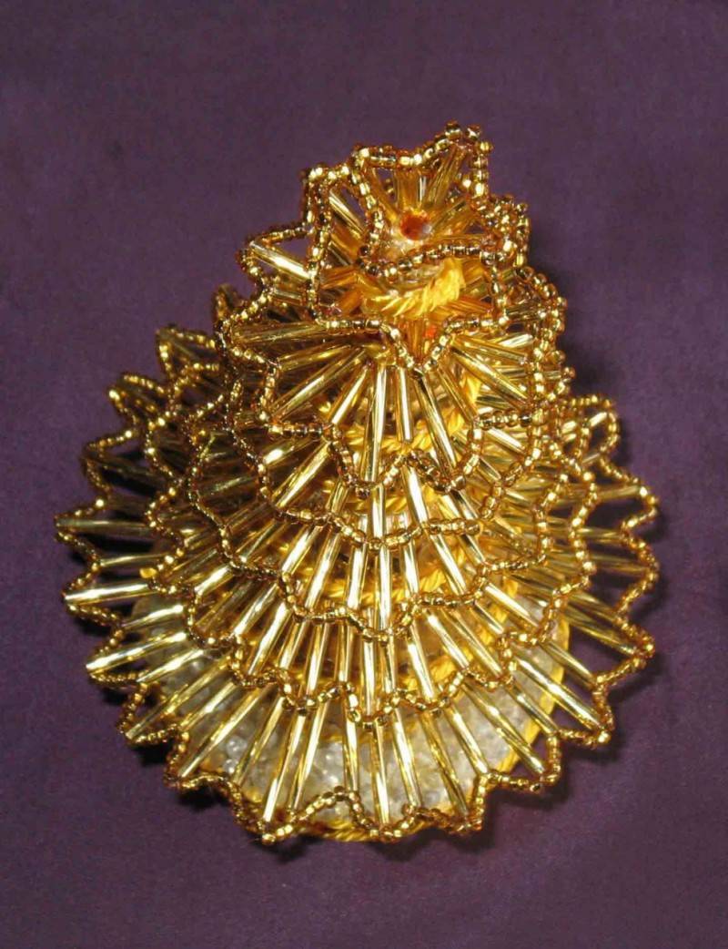 Работата по изплитането на дантелено коледно дърво с мъниста се извършва в няколко стъпки: