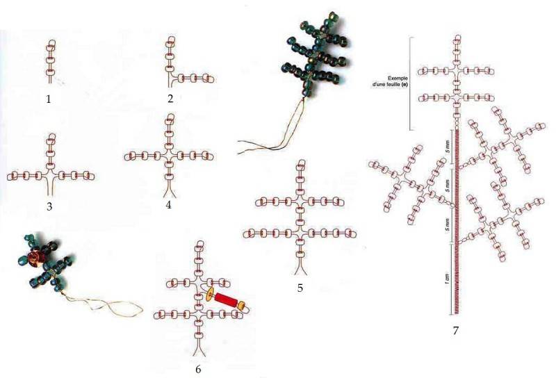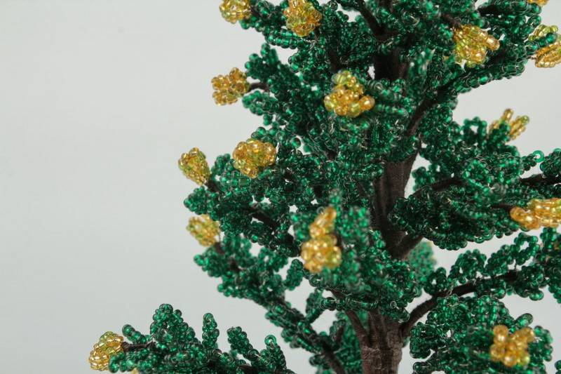 - При изработването на последните клончета вдълбайте по три мъниста наведнъж;
