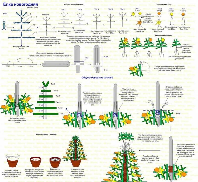 Ръчно изработена коледна елха с мъниста - лесни схеми и майсторски класове за начинаещи