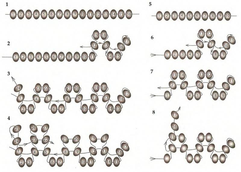 - Върнете няколко мъниста назад и завъртете примката отново. Важно е да се уверите, че посоката им е в различни посоки;