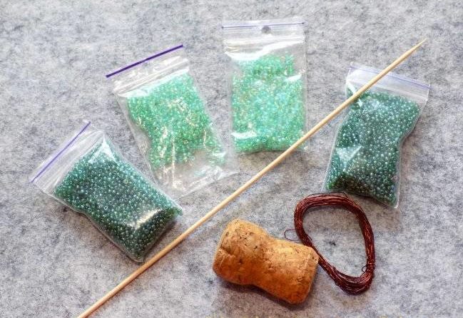 За целта се нуждаете от тел, която се огъва добре, и мъниста в желания от вас нюанс.