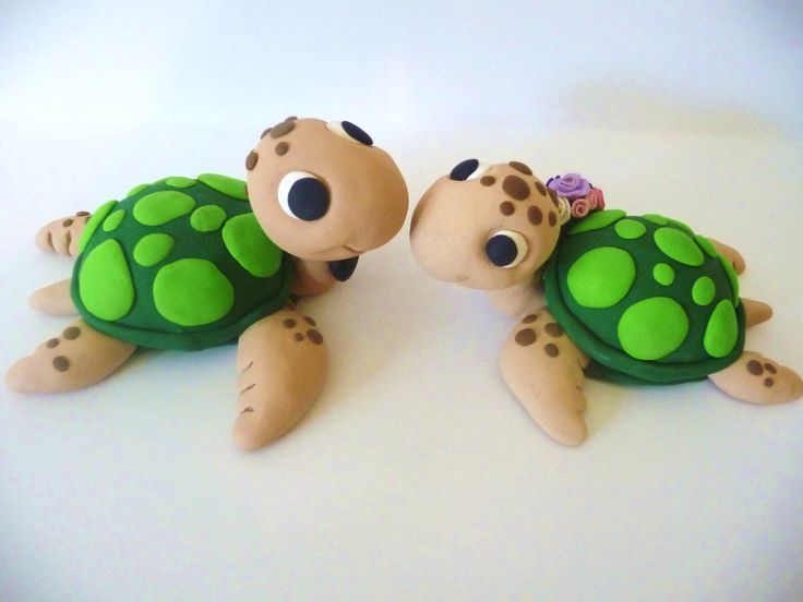 Ако частите са лошо свързани, можете да поръсите с вода моделиращата маса. Ще бъде по-лесно да поправите частите. Костенурката ни е готова.