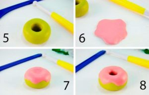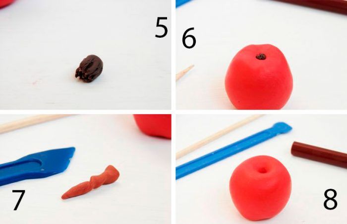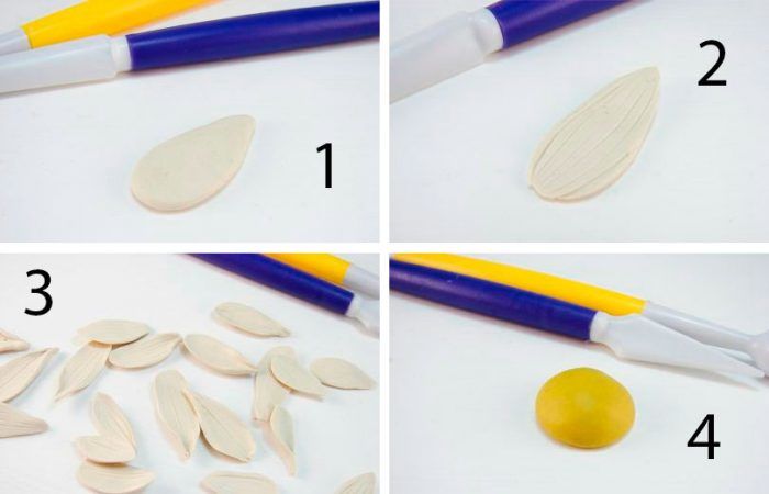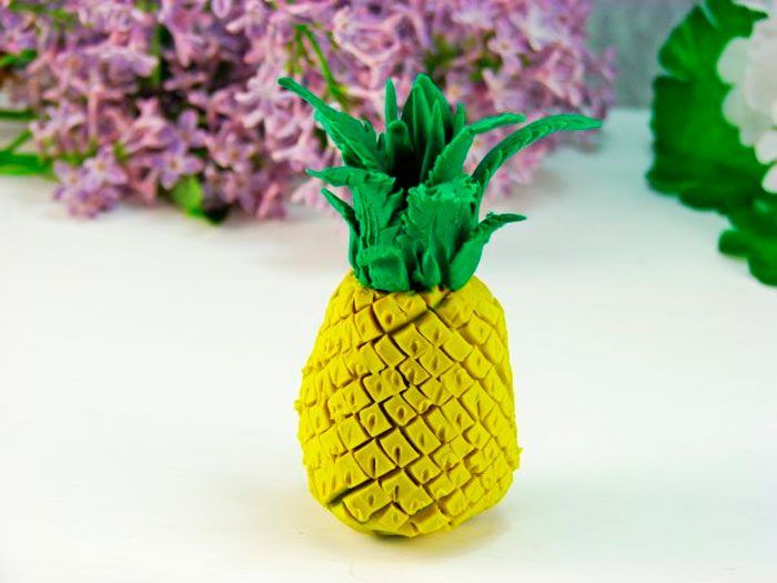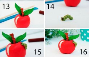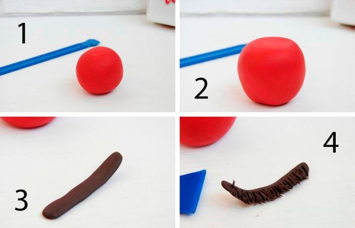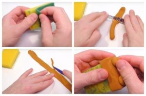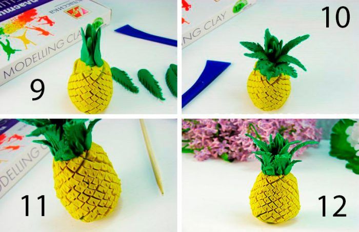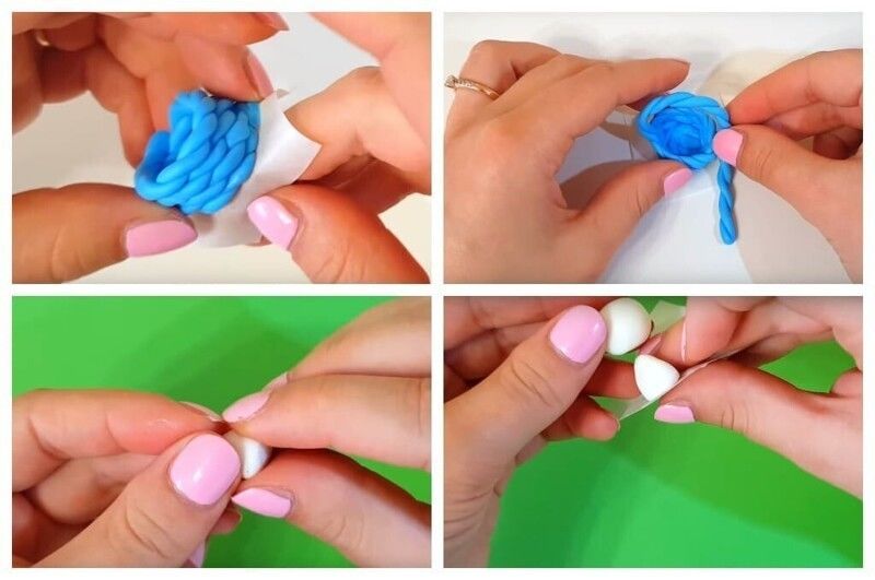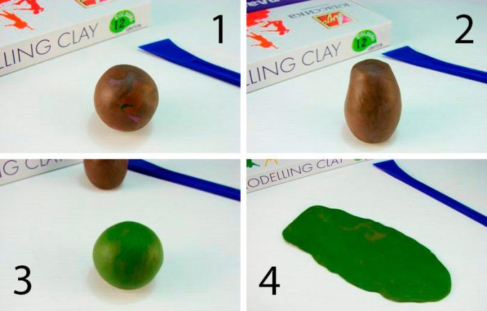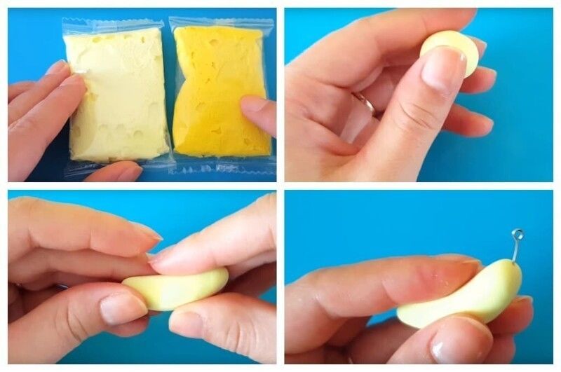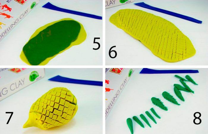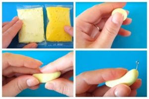 За моделиране се снабдете с бяла, жълта и зелена глина. Сега можете да започнете творческия процес.
