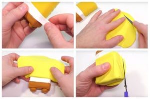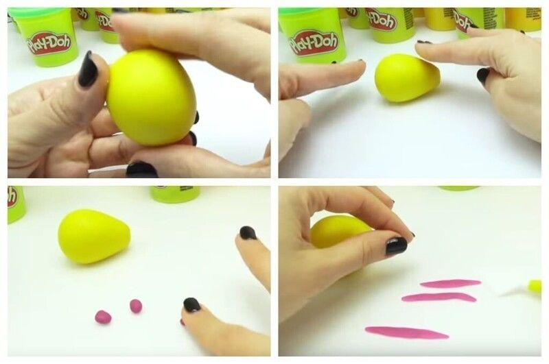 - От голямо парче жълт пластилин разточете топка в ръцете си. Повърхността трябва да е гладка.