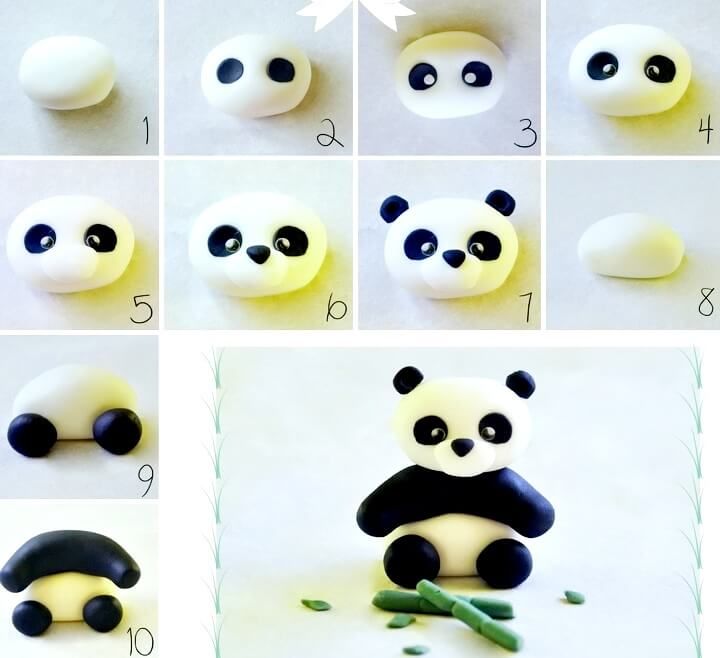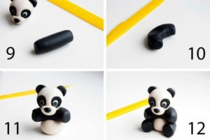 Създадено е още едно смешно животинче. Сега започнете да правите следващото животно. Пандата е по-трудна за изработване. Детето ви ще има нужда от помощта на възрастен в този творчески процес.