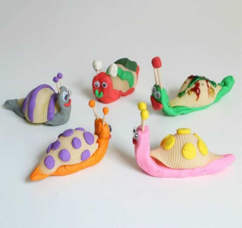Друга много лесна фигура от глина е охлювът. За създаването му са необходими два цвята. Кои двама? Изборът зависи от вас.