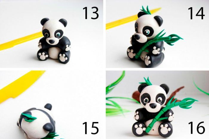 За украса можете да направите още няколко бамбукови клончета от зелен пластилин.