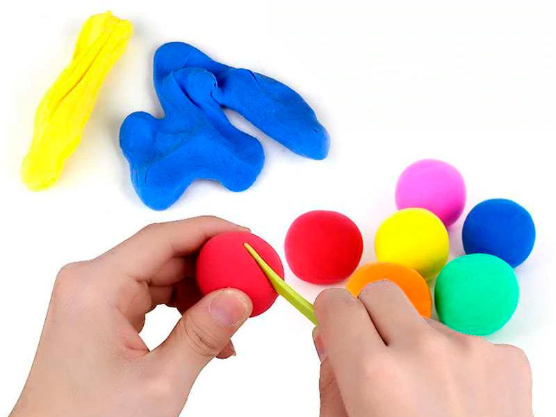 Глината не полепва по ръцете и не оставя петна по дрехите или мебелите, когато се използва. Работата с него е много лесна. Мека на допир, тя се меси бързо и лесно в ръцете на детето ви. Разнообразието от цветове позволява да се направят цветни апликации и фигурки за всеки вкус.