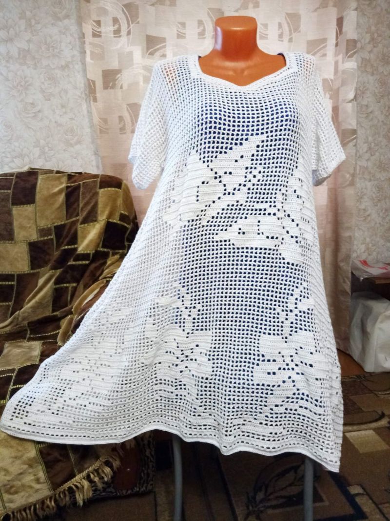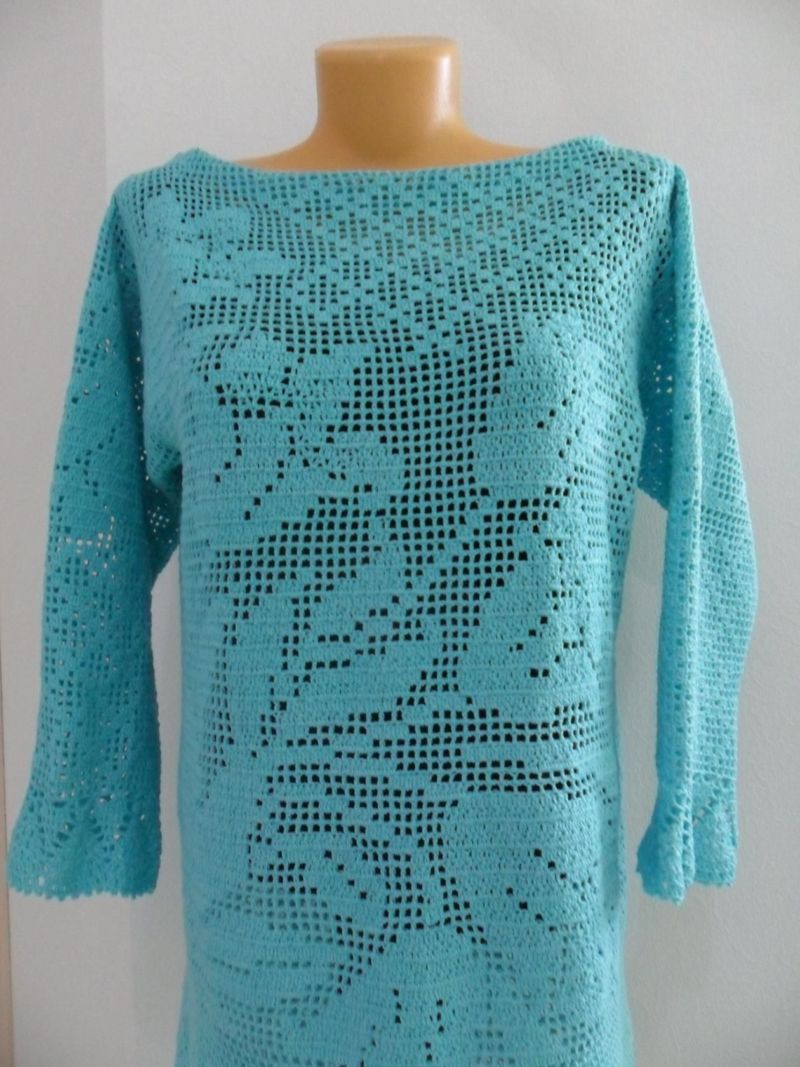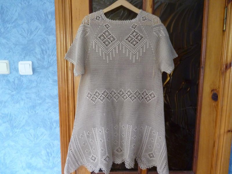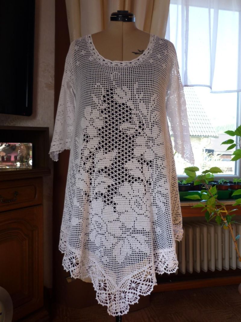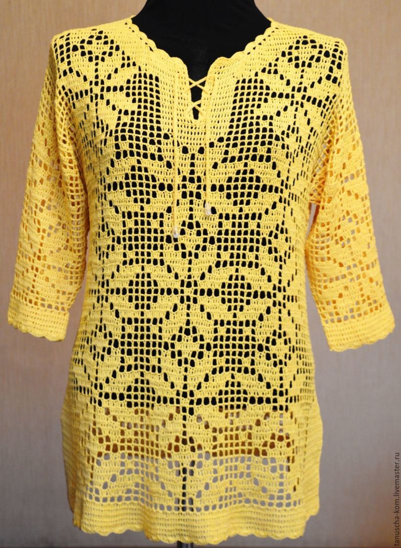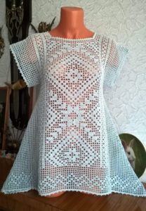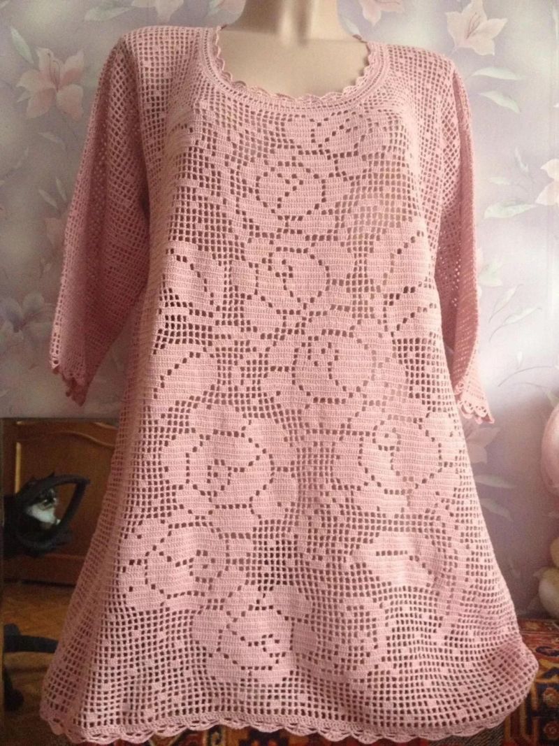 За тези, които нямат опит в плетенето на една кука, трябва да изберете схема, която ясно ще съответства на размера на готовата туника по отношение на модела за филетиране.