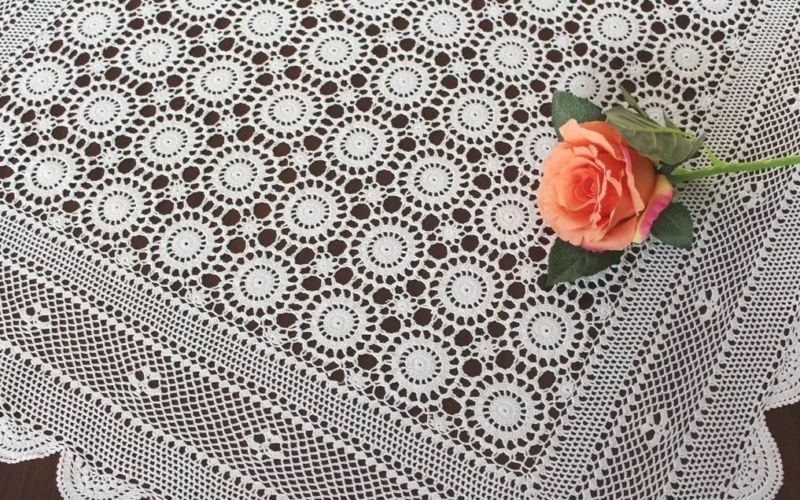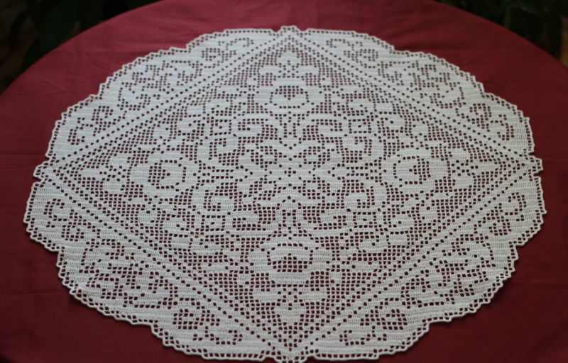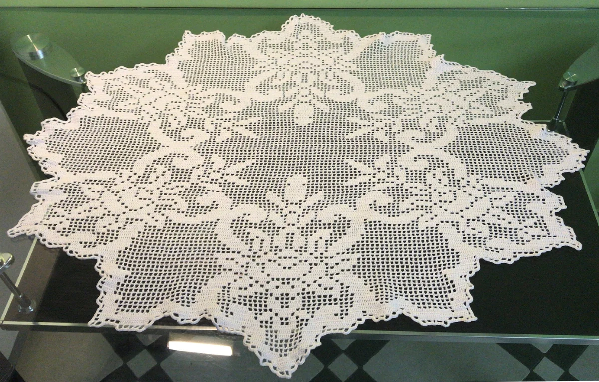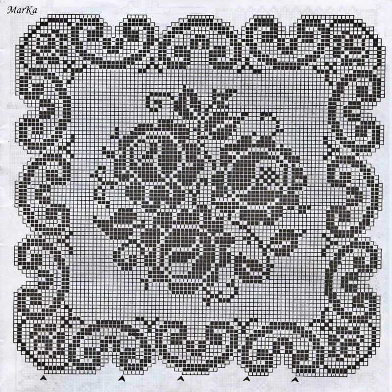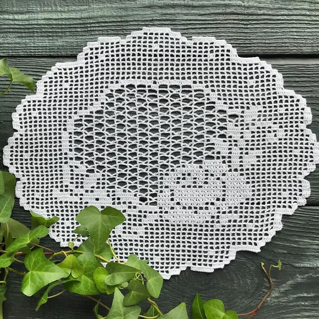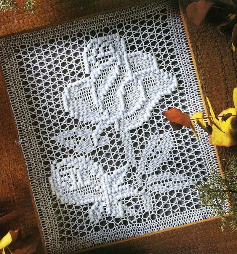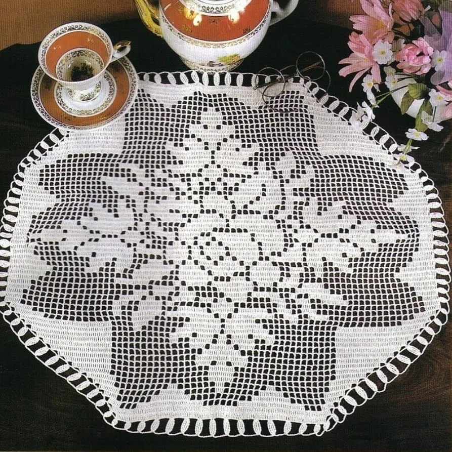 Ако желаете да си направите малка салфетка с мотив на роза и леко вълнообразен ръб, направете това, като използвате този модел.