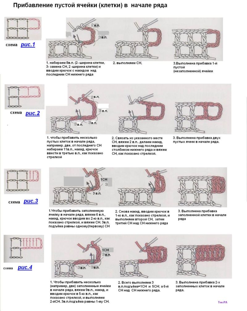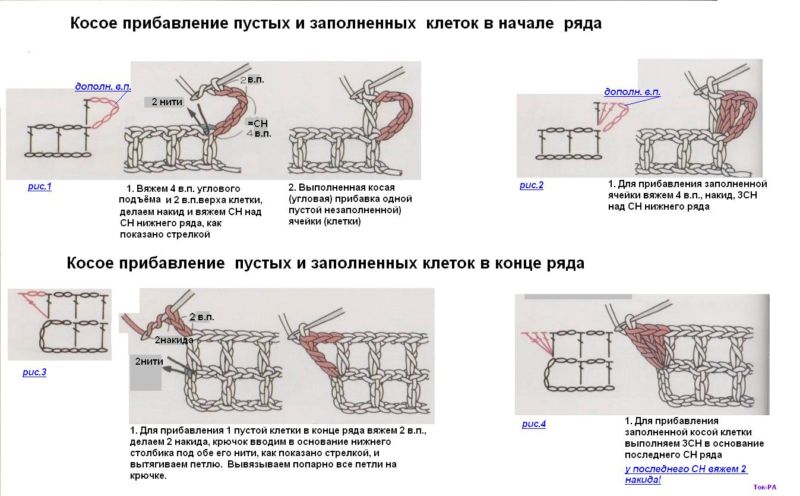 Принципът е да се запълни празна клетка. Няма да ви се наложи да плетете 1, а 2 бримки от 1 бримка в основата.