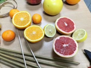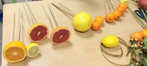 Ще ви трябват абсолютно същите материали като в предишната работилница, но заменете плодовете с цитрусови плодове от всякакъв вид.